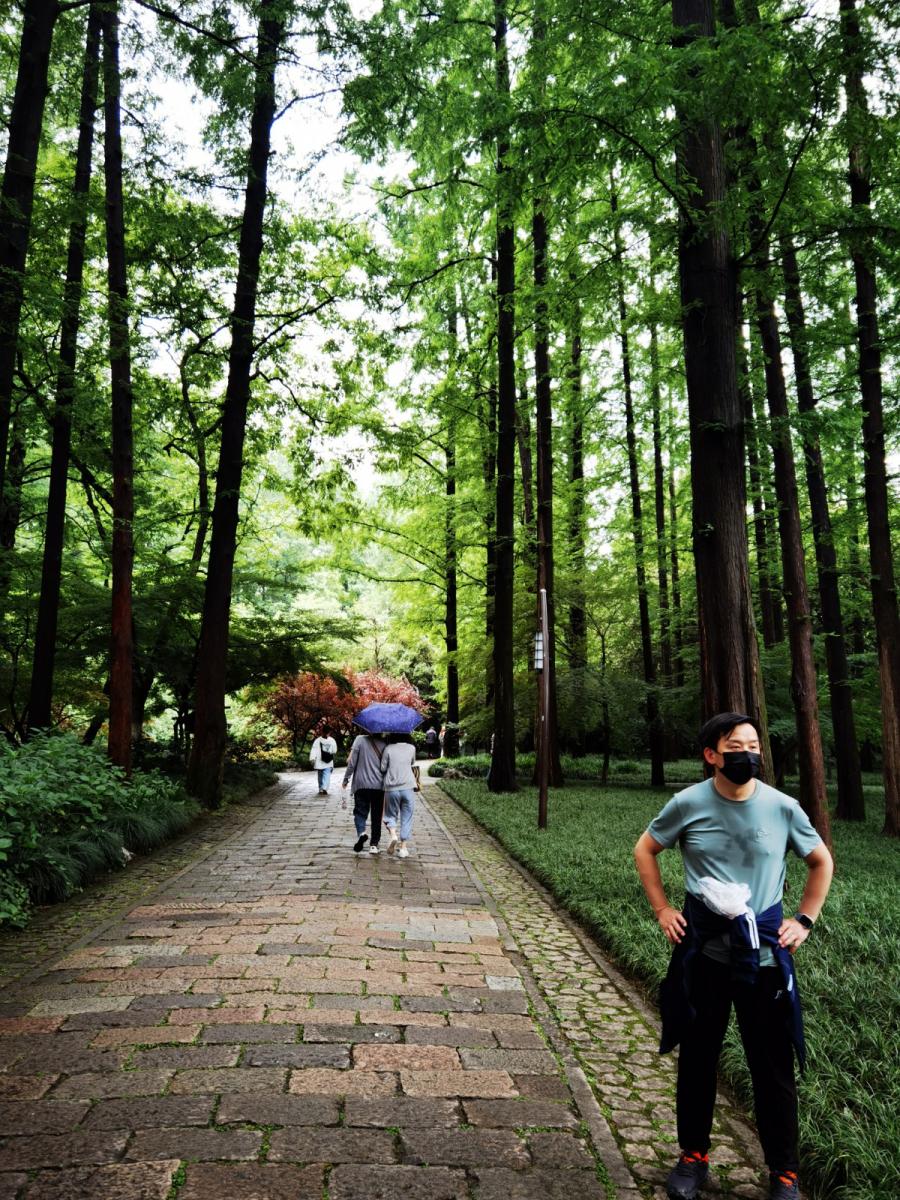 中午,大家陆续汇聚到西湖宝石山上的保俶塔边,观山下西湖绮丽风光并合影留念。下午两点整,大家集体出发,穿行于林间步道,经栖霞岭下山至湖边,途经曲院风荷,最终到达杭州花圃。一路上,大家欢声笑语,迎着春风,呼吸清新的空气,欣赏着山间湖边的美景。